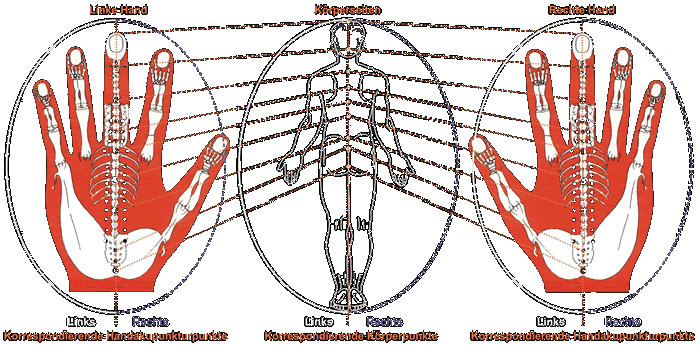 korrespondiert die Vorderseite des Körpers, die Rückseite der Hand die