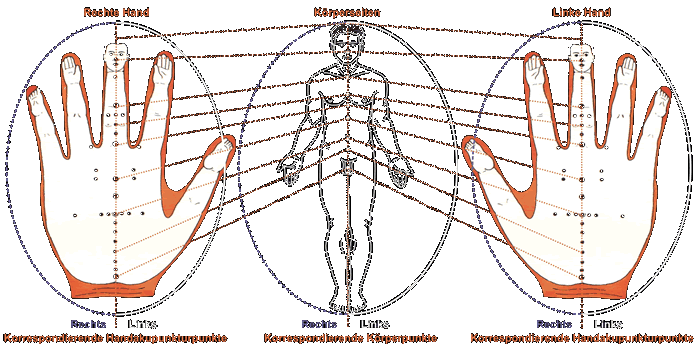 Jede Hand repräsentiert den gesamten Körperteil doppelt dargestellt (