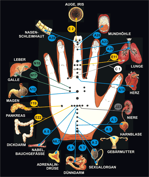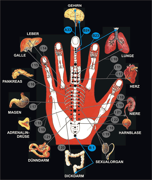 einem Organ oder Körperteil den entsprechenden Hand-Akupunkturpunkt
