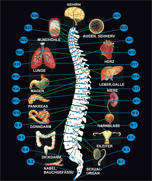 die von den jeweiligen Wirbelsäulenpunkt beeinflusst