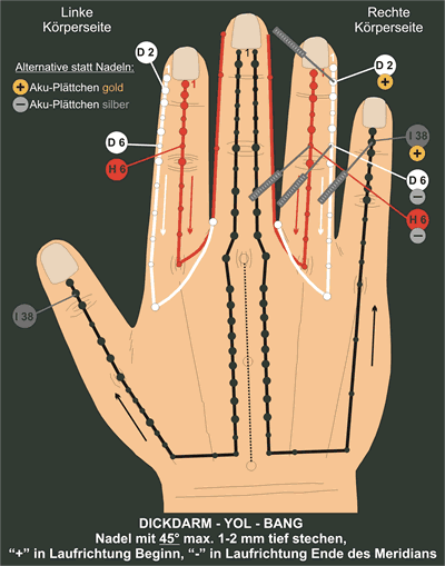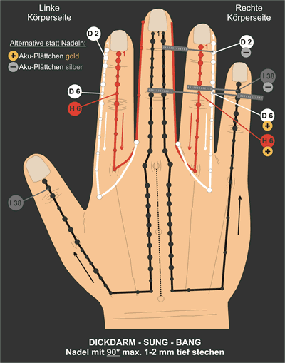 (Dickdarm schwach, Energiedefizit, Unterfunktion des Meridians, Kälte,