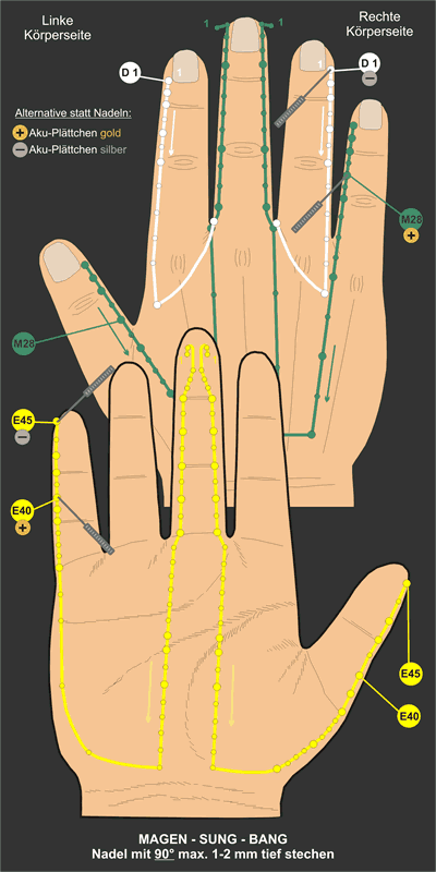 Kardinalpunkte: E 40, E 45, D 1, M 28 Akupunkturnadel